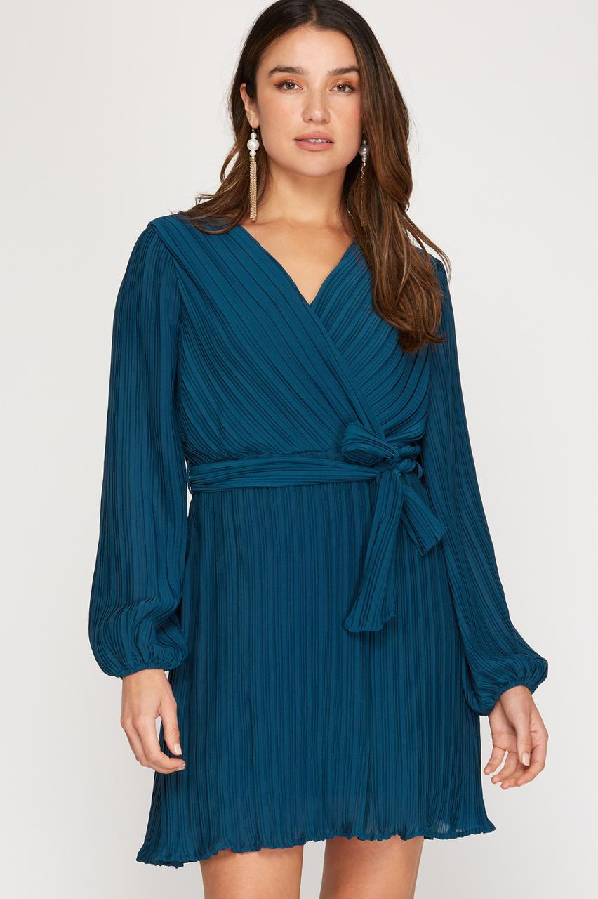 Este vestido corto plisado es perfecto para cualquier ocasión. Hecho con tela de alta calidad, su diseño plisado es elegante y favorecedor para cualquier figura. Su longitud corta lo hace ideal para lucir las piernas y se puede vestir fácilmente con tacones o sandalias.